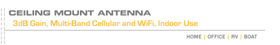 Digital Antenna's 433-CM multi-band ceiling mount antenna is designed to be mounted indoors, on a suspended ceiling with either flush or recess mounted ceiling tiles. This innovative 3dB gain antenna adds an attractive, low profile appearance to a repeater installation. Ideal for use with Digital Antenna's PowerMax™ 4KSBR-50U and 4KMR-30U repeater systems, as well as our 2.5 GHz WiFi systems.