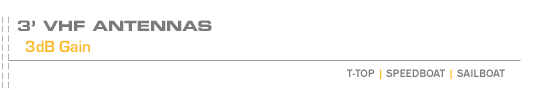 | A low profile and economical solution, Digital Antenna’s 3’ VHF antenna offers an efficient 3dB gain for dependable communication. The simple push and twist quick-disconnect antenna mast allows for easy storage when fishing or using a boat cover. The 200 Series is a great choice for T-tops, speedboats and sailboats, providing a broader signal in rough seas or during “heeling”. White only; this antenna is no longer available in black. All of our antennas are made in the USA, assembled, tested and tuned by hand for maximum performance, quality and durability.