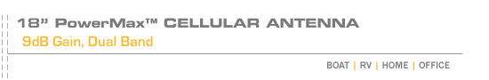 Digital Antenna’s 288-PW universal 18" dual band cellular antenna is ideal for many applications, including boats, RVs, homes and offices. This omni-directional 9dB gain cellular antenna improves signals on cellular (810-900 MHz) and PCS (1800-1990 MHz) bands, offering excellent performance in a compact design. When communication is critical, our award-winning antennas make the connection.